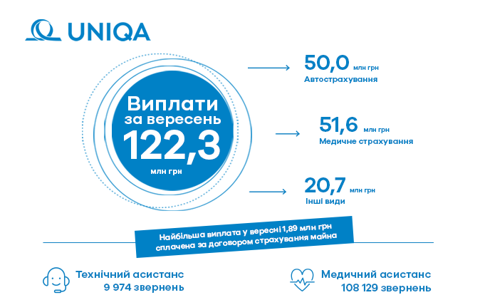 У вересні 2023 року клієнти UNIQA Україна отримали страхові виплати на загальну суму 122,36 млн грн.