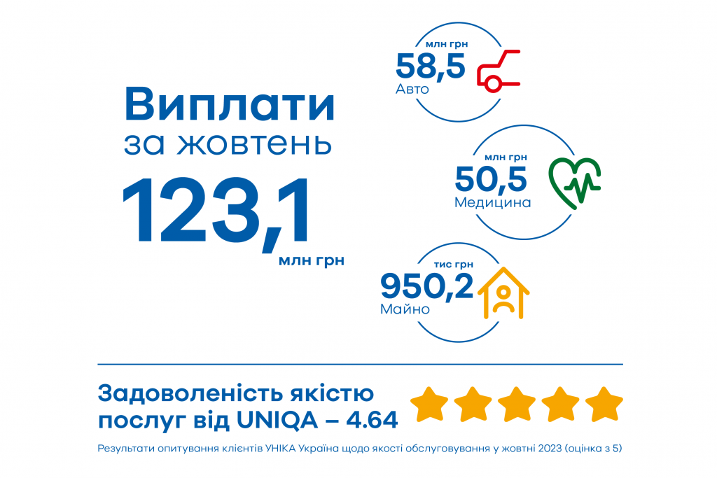 У жовтні 2023 року клієнти UNIQA Україна отримали страхові виплати на загальну суму 123,11 млн грн.