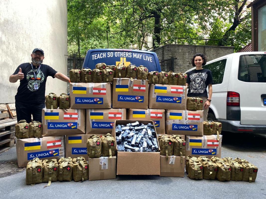 UNIQA Group (Австрія) та UNIQA Україна у співпраці з Фондом Сергія Притули продовжують забезпечувати гуманітарною допомогою медичні заклади та українців на лінії фронту. В рамках цієї співпраці було передано черговий вантаж, що налічує 5 500 аптечок (JFAK, IFAK) на суму понад 17 млн грн.