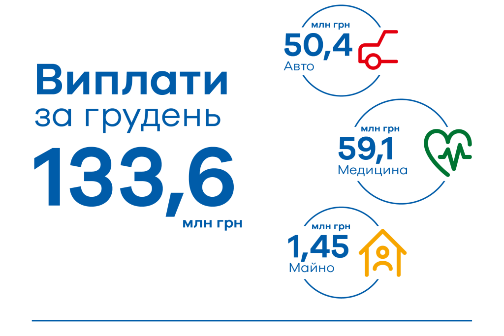 В декабре 2023 года клиенты UNIQA Украина получили страховые выплаты на общую сумму 133,67 млн грн.