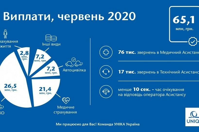 Клиенты небанковской финансовой группы «УНИКА Украина», в состав которой входят страховые компании «УНИКА» и «УНИКА Жизнь», в июне 2020 года получили страховые выплаты на общую сумму 65,1 млн. грн.