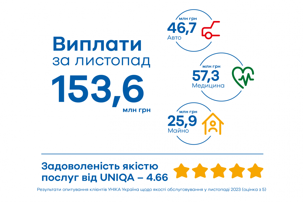 Сумма страховых выплат клиентам небанковской финансовой группы «УНИКА Украина» (страховые компании «УНИКА» и «УНИКА Жизнь»), в ноябре текущего года составила 153,69 млн грн.
