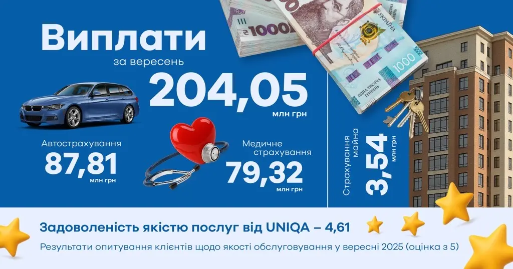 В сентябре UNIQA Ukraine произвела наибольшую выплату месяца - 2,22 млн грн по договору страхования грузов.