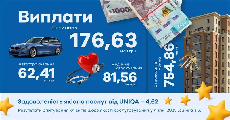 В июле UNIQA Украина выплатила клиентам 176,63 млн грн по договорам страхования, чтобы поддержать в моменты, когда это действительно важно.