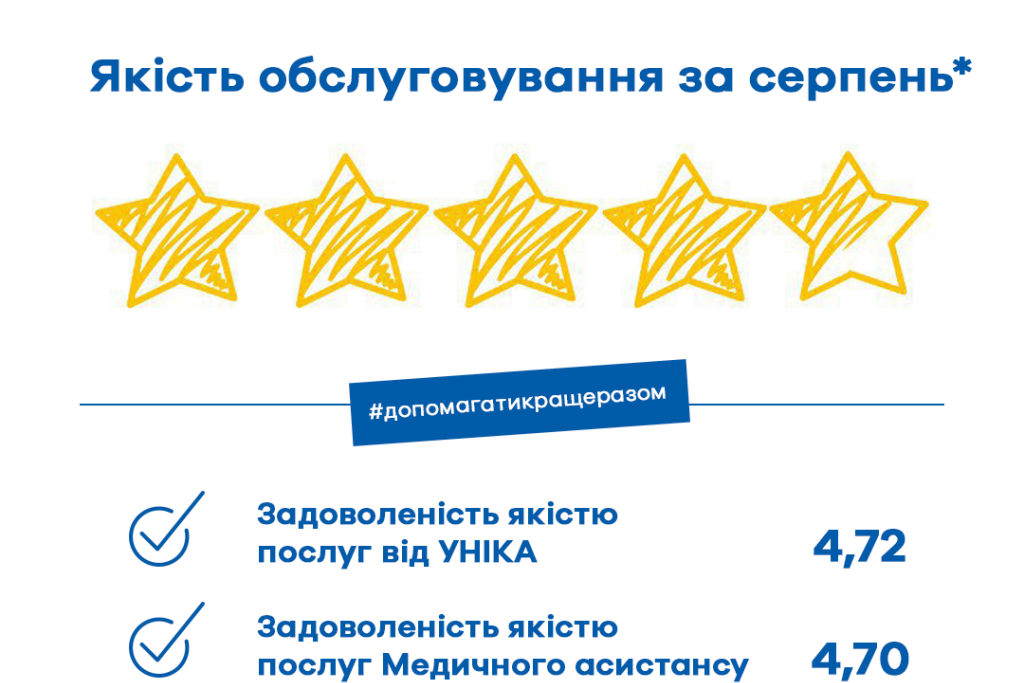 - Уровень удовлетворенности качеством услуг Медицинского ассистанса УНИКА – 4,70 из 5.