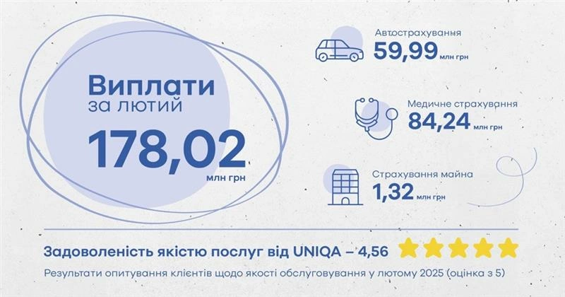 UNIQA Ukraine продолжает демонстрировать стабильность и высокий уровень обслуживания своих клиентов – за февральский период компания произвела общие выплаты на сумму 178,02 млн. грн.